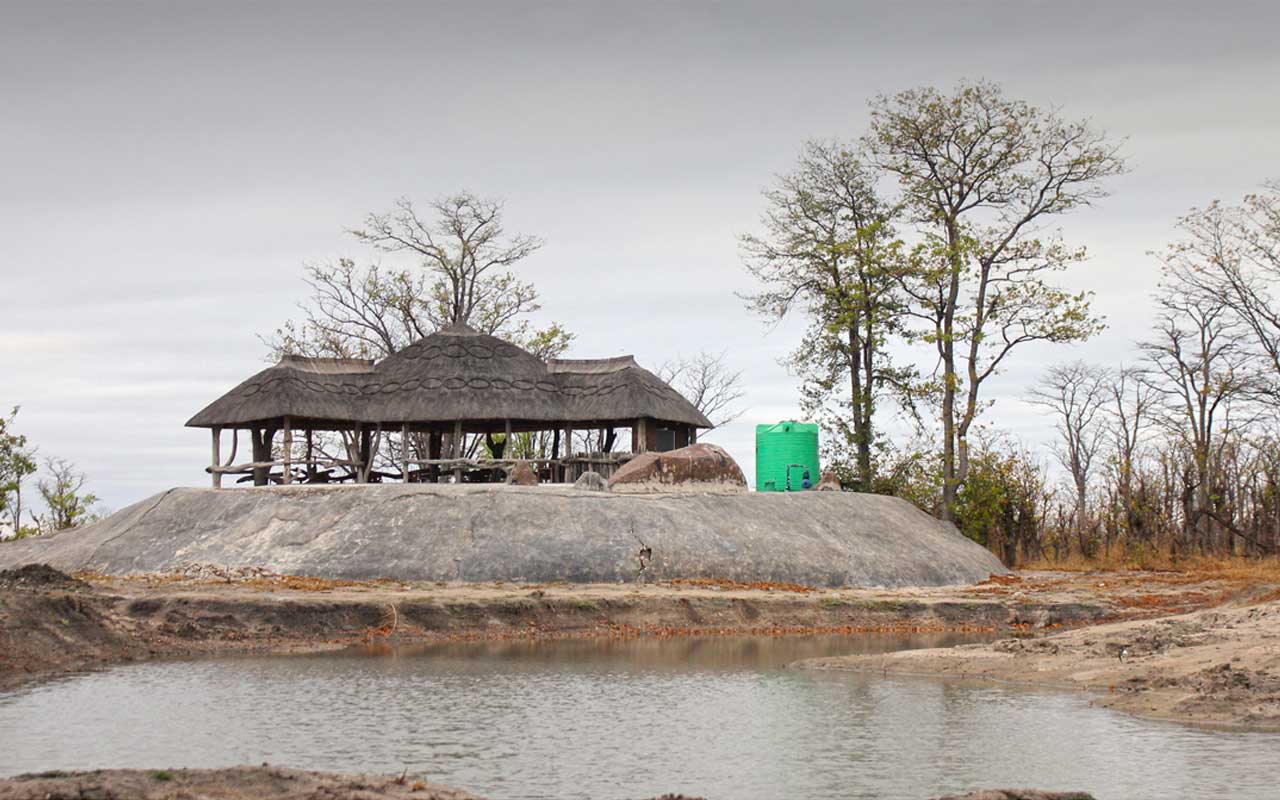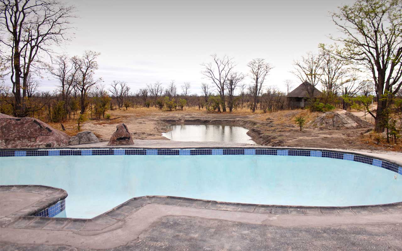 Ideally situated on the edge of a former hunting concession called CT5 and right along the Botswana Zimbabwe border not far from Hwange National park in Zimbabwe, this place is prolific with wildlife! Surrounding this 12 – room lodge are water holes from which the animals drink every day at sunrise or just before sundown.